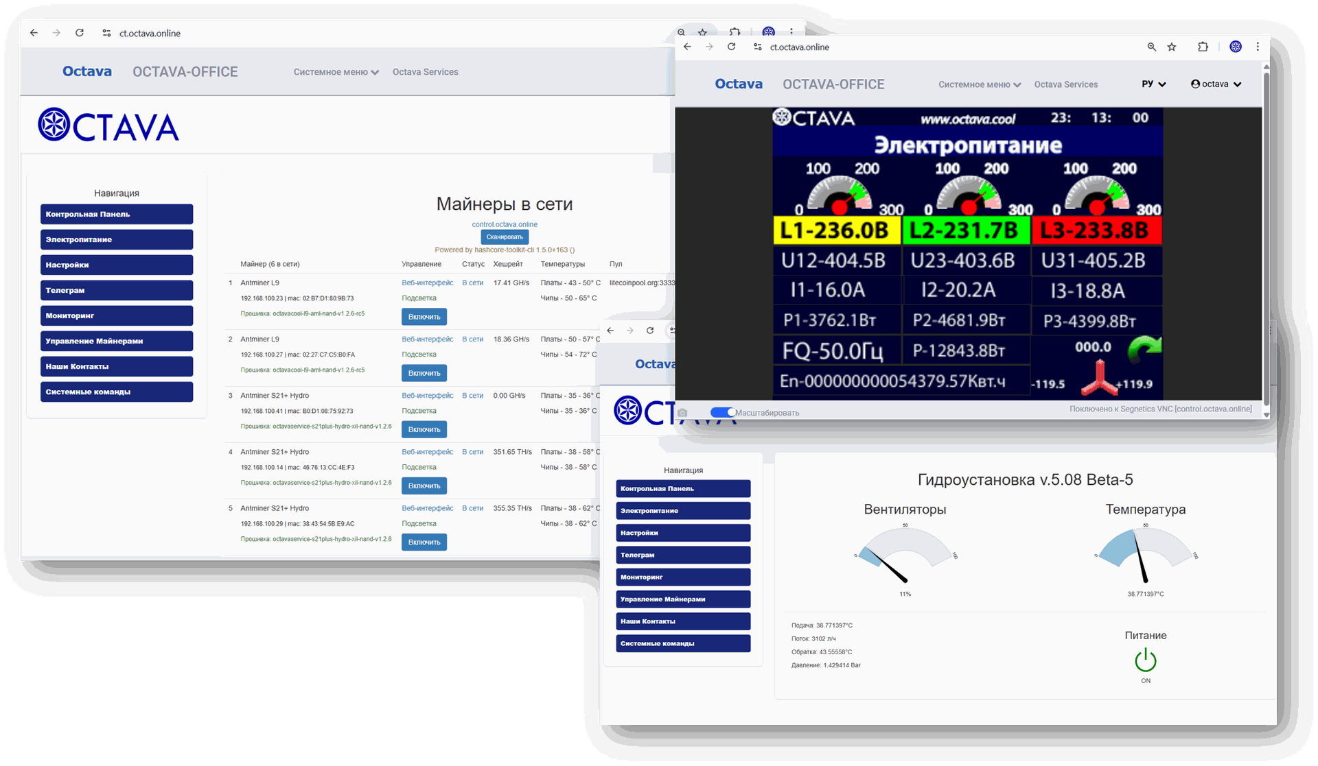 - Настройка отключения системы по любым значениям для защиты асик-майнеров удаленно.